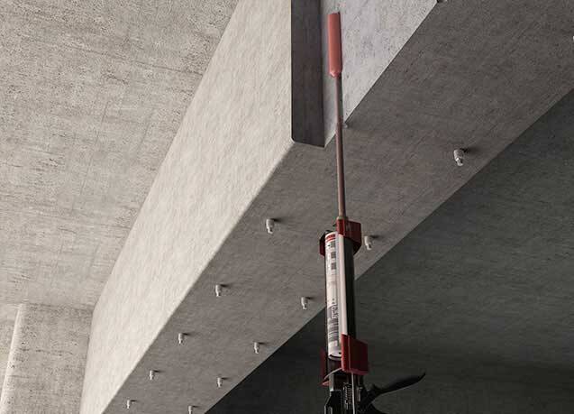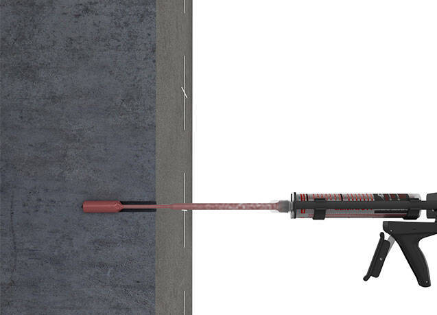 3. Bơm keo epoxy neo HM-500 vào lỗ, bắt đầu từ đáy, đồng thời từ từ kéo máy trộn tĩnh trở lại. Trong mọi trường hợp, tránh để không khí bị kẹt. Đối với các lỗ sâu, có thể sử dụng ống nối dài.