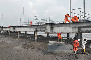 • Tất cả các mức độ bảo vệ cọc đã chỉ định phải được làm sạch và loại bỏ tất cả các vật liệu rời, rỉ sét, sinh vật biển, v.v. bằng cách loại bỏ và phun nước áp suất cao.