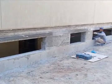 Đánh bóng bề mặt bê tông để loại bỏ lớp sơn trên bề mặt, thổi sạch bụi nổi bằng khí nén;